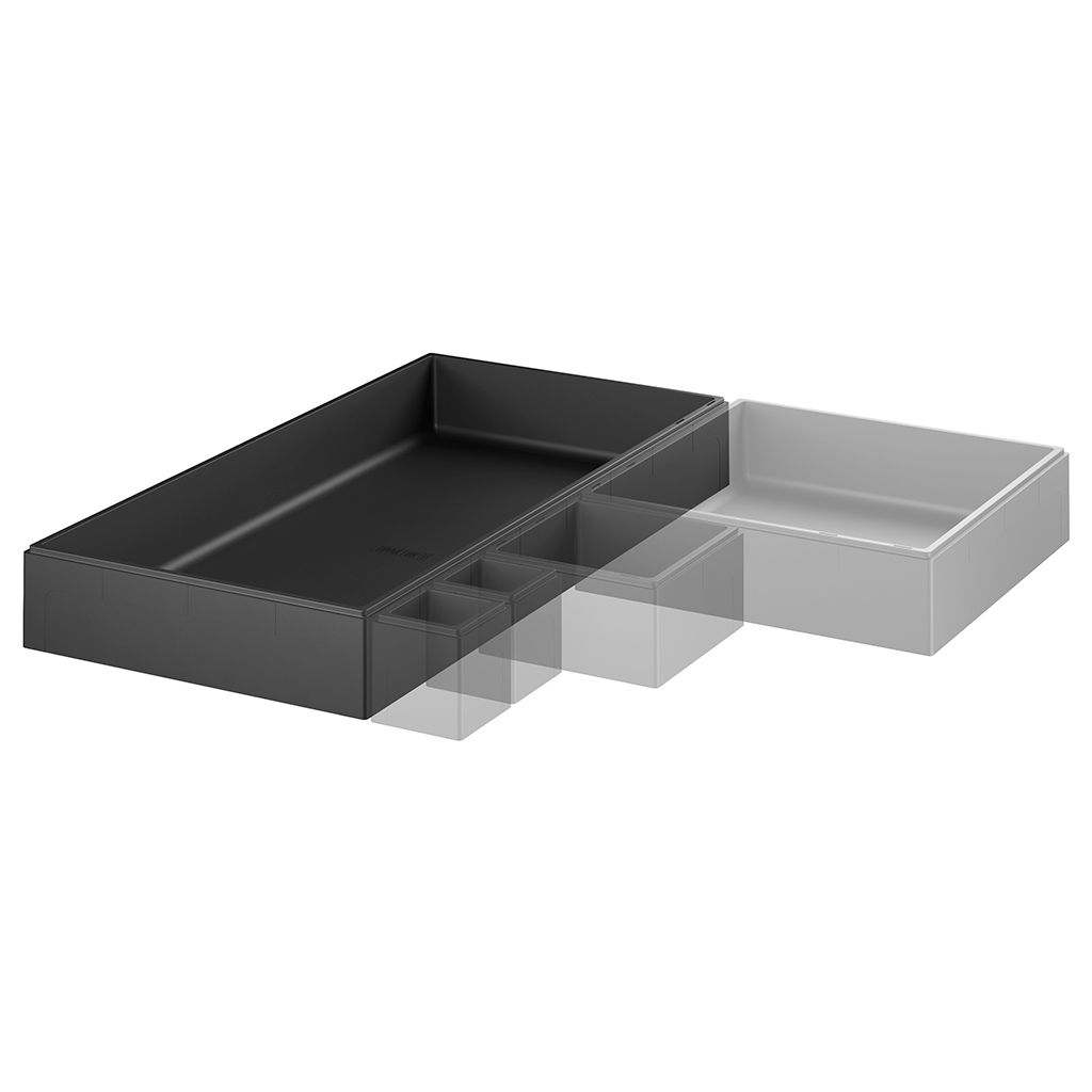 Ящик прекрасно подходит для аккуратного расположения метизов, отверток, плоскогубцев и других инструментов, помогая поддерживать порядок в вашем рабочем пространстве. Удобная конструкция позволяет легко укладывать ящики друг на друга, а специальный паз на основании гарантирует надежную фиксацию на тележках WDS-4/5/6. Кроме того, вы сможете разместить их в выдвижных ящиках верстачных тумб, оптимально используя все уголки своего рабочего места.